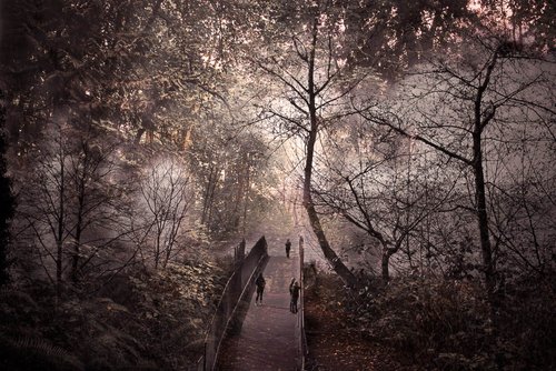 Yost Park on a foggy morning. Exploring the magic of light inside fog